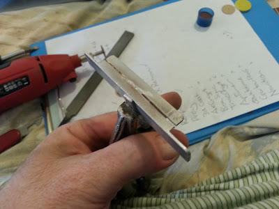 Tada! filled in a couple of dents that magically appeared somehow. Managed to get glue all over my fingers in my rush to get things done............despite bringing some disposable gloves to the party. It would have been nice had I remembered to wear them hahaha